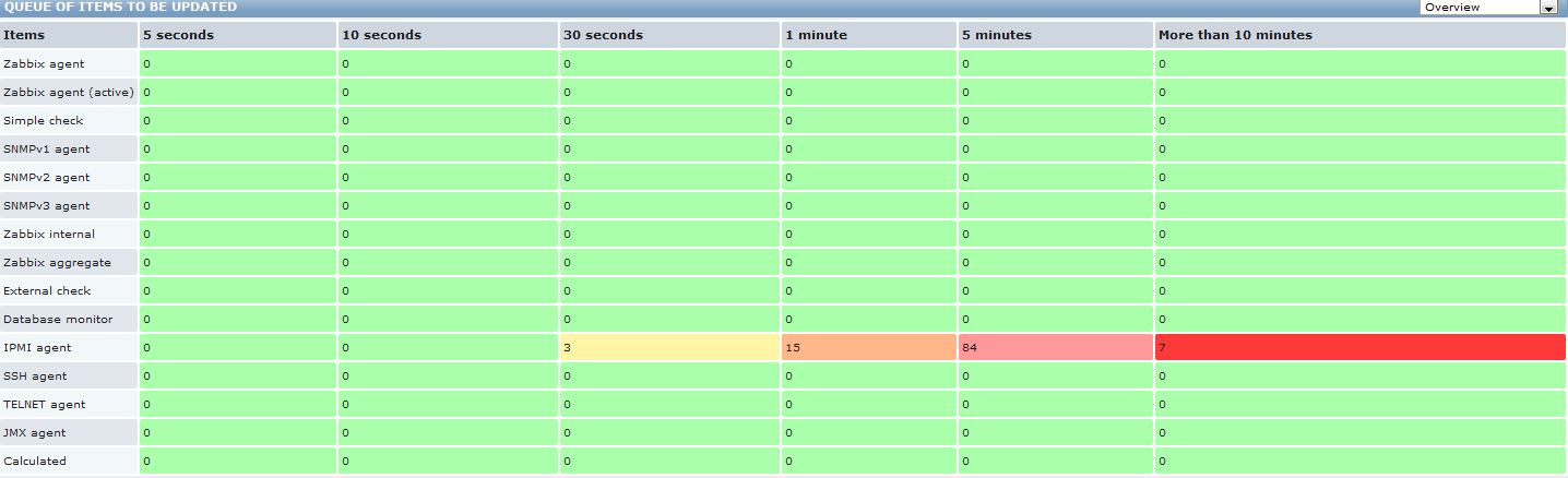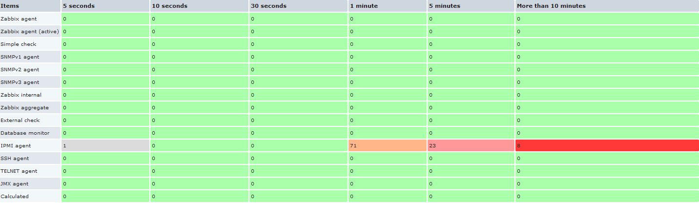 I'm testing zabbix for a month or 2 now and i have a mayor problem with monitoring IPMI devices with zabbix. All IPMI devices come from Supermicro servers. I made my own template specially for these boards. From the moment i start monitoring more then 3 IPMI devices my queue starts hanging from the 1min, 5min and 10min (after a while it flushes but then it start over).