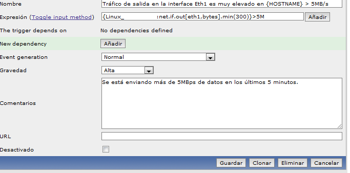 Need to create a trigger (on a template for Linux) for changes that occur in the input and output Ethernet.