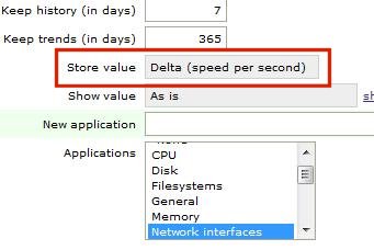 I have hooked up the stat net.if.in/out(eth1) and it gives me a running total of data going in and out, is there a way to display this as data / t rather than a total? It would be much more useful for graphing.