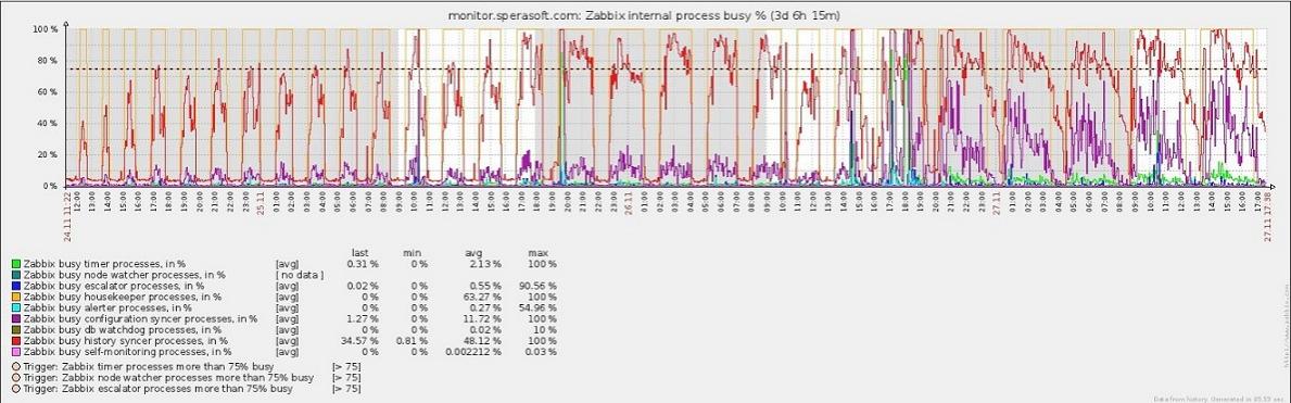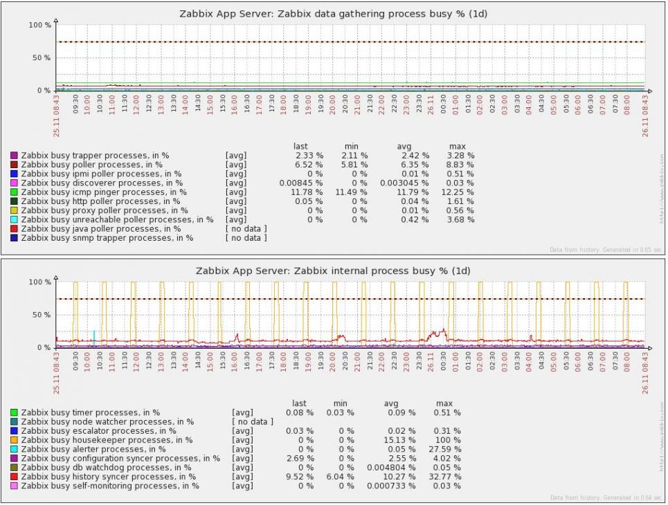 I have this issue zabbix housekeeper process every 1,5 hour is loaded heavily to 100%. It doesn't impact overall performance but bothers me. I've got no idea how to debug this issue. Could please someone help?