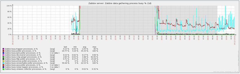 Post your Zabbix Solution graphs so we can see what zabbix is doing.