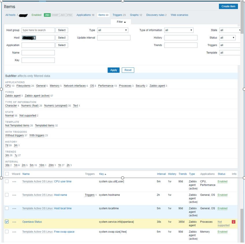 user@zabbix-server:~# zabbix_get -s host -p 10050 -k systemd.service.info[openlava]
