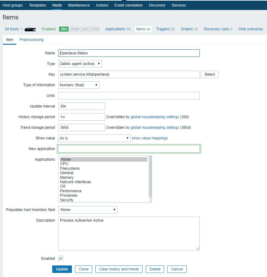 Openlava Status system.service.info[openlava] 30s 1w 365d Zabbix agent Processes Not supported