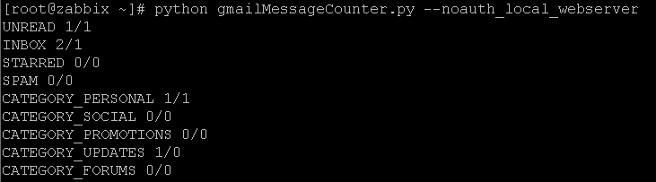 UserParameter=discovery.message,/path/to/python /path/to/gmailMessageCounter.py --noauth_local_webserver
