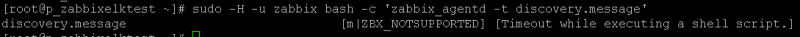 sudo -H -u zabbix bash -c 'zabbix_agentd -t discovery.message'