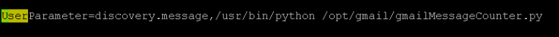 UserParameter=discovery.message,bash -c 'python /full/path/to/gmailMessageCounter.py --noauth_local_webserver'