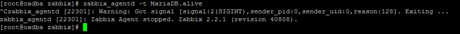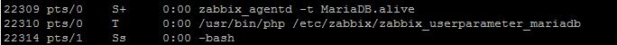 UserParameter=MariaDB.alive,zabbix_userparameter_m ariadb.php MariaDB.alive