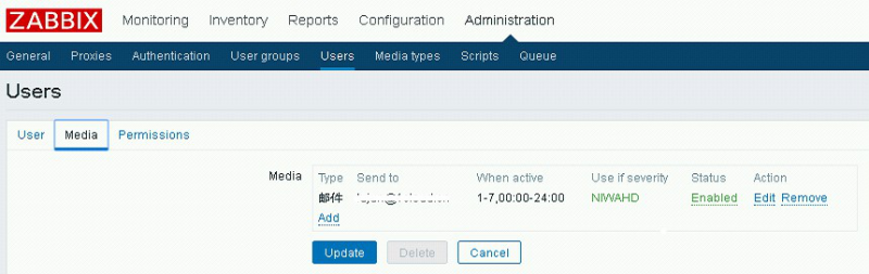 1) I can send mail with the command like 'echo "Zabbix test" | mailx -v -s "test" [email protected]' from the zabbix server , with the "zabbix" user.