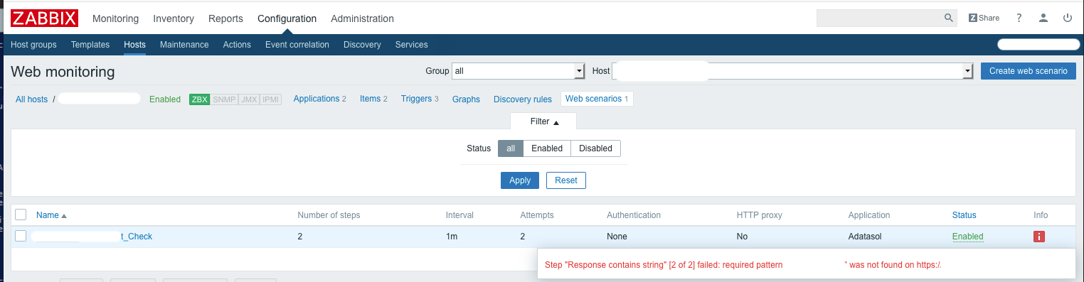 I'm trying to setup an Action that sends an email with certain useful content in the email. When I'm looking at the Zabbix_server-> Configuration -> Hosts -> <servername> -> Web page, it has a little red "I" icon at the far right of a Web Scenario. (See attached screenshot.) Hovering over this icon reveals a nice error message with the details of what failed. How do I get that error message into the email that the Action sends out?