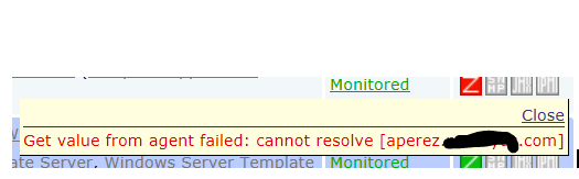 I pretty new to zabbix, I am working with a test host to figure out this zabbix stuff. I have got everything working (a lot of reading was involved) but im having an issue with trying to get my zabbix server to monitor my host with the DNS instead of the IP address, I haven’t been able to do it yet, not sure what i could be missing, any ideas would help. ?? When I change the option to dns instead of ip address the monitoring icon turns to red and it gives me a message like this "Get value from agent failed: cannot resolve [<hostname>]"