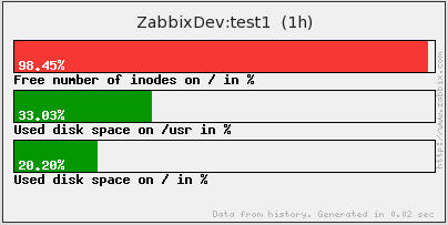 I know this comes down to a personal preference, but my management would like to see a bar graph used to show how much space is left on a filesystem. I know that I can do this with a pie graph reporting the latest data, but I would prefer to see it something similar to the bar graph below