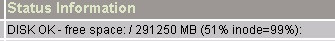 | 2019-03-04 15:37:34 | DISK OK - free space: / 291250 MB (51% inode=99%);| /=269206MB;570456;580456;0;590456 |