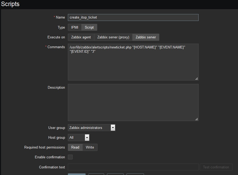 /usr/lib/zabbix/alertscripts/newticket.php "{HOST.NAME}" "{EVENT.NAME}" "{EVENT.ID}" "3"