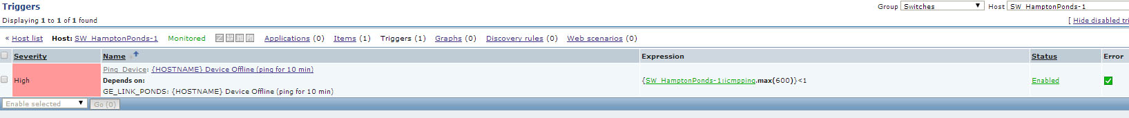 Above is an example of similar to all my configurations. GE_LINK_PONDS configured as the same ping test, yet the switch it depends on, SW_HamptonPonds-1 triggers when GE_LINK_PONDS is down, plus all the devices beyond which have nested dependencies.