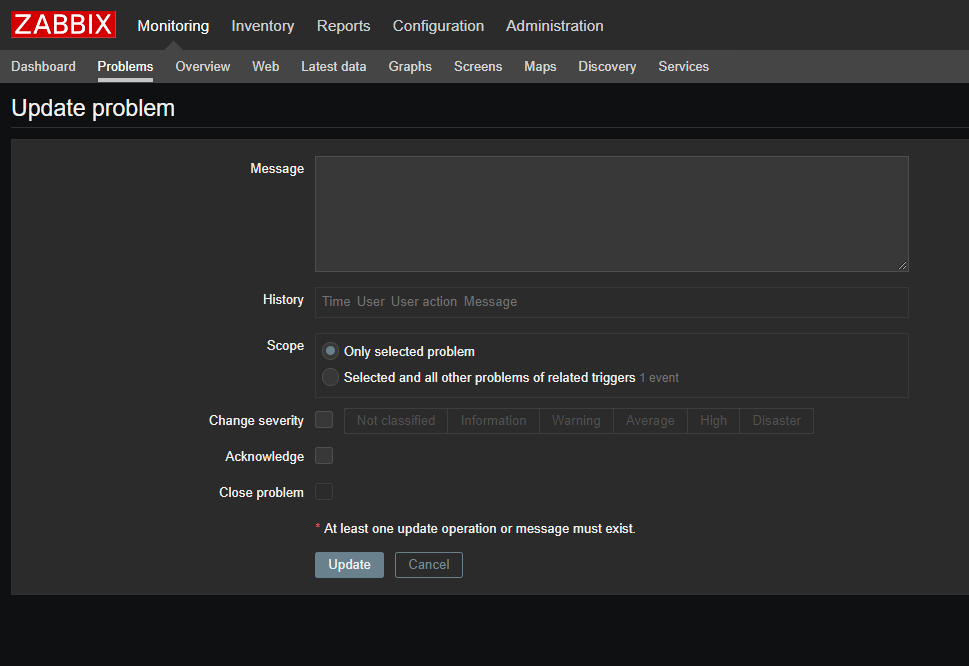 inside the new screen, Update problem, we have a text box called "Message"