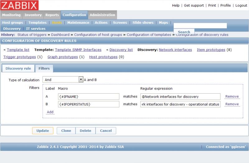 I'd like to modify the standard "Template SNMP Interfaces" Discovery rule so that I can filter on both the ifName and ifOperStatus.