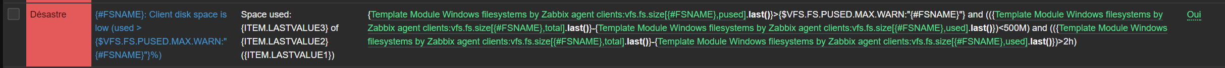 I'm customizing our company's zabbix and for our needs, we would like to have the alerts on the template filesystem to send us the space left in Go and not in percentage