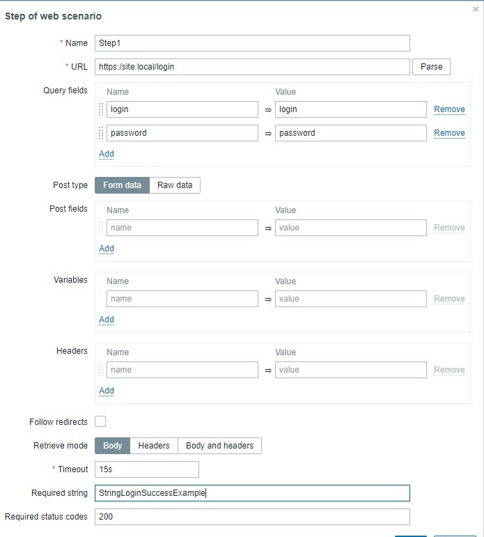 There is a site that I want to monitor http agent with authentication. When I enter my username and password in the request fields, they are searching in the url.They are not inserted in the fields of the login and password request on the site.