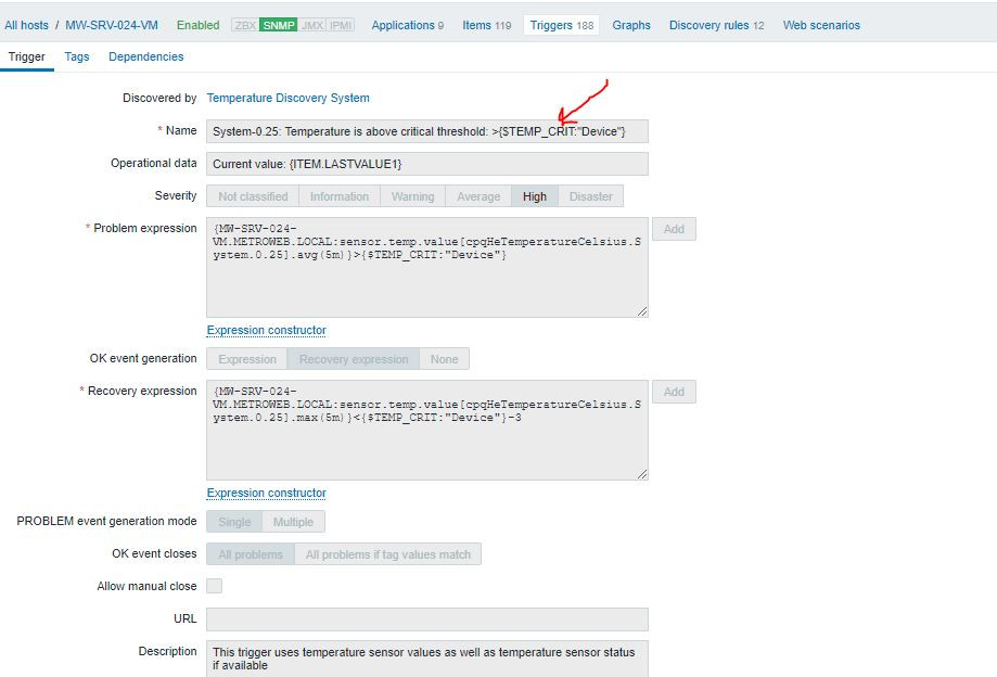 i'm monitoring HP DL380 by SNMP. How to modify temperature's variable ?