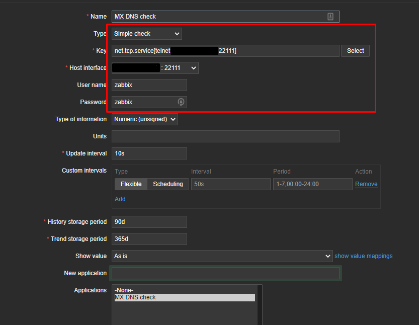 e.g. net.tcp.service[telnet,10.0.0.1,22111]
