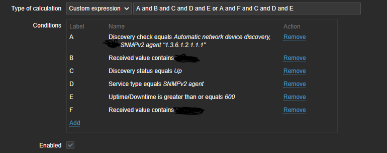 I'm trying to setup automatic discovery of network equipment of different manufacturers and filter the adding and automatic linking of template by the use of SNMP OID discovery check and if it contains the manufacture's name.