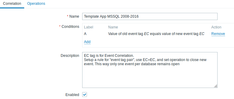 Setup a rule for "event tag pair", use EC=EC, and set operation to close new event. This way only one event per database remains open.