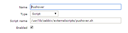 Have set up notifications via PushOver using https://github.com/twostairs/zabbix-...pt/tree/master but nothing appears to happen when an issue arises. I have tried specifying the full path to the script as per attached image. If I execute the script from the command line all works well. What am I missing please ?