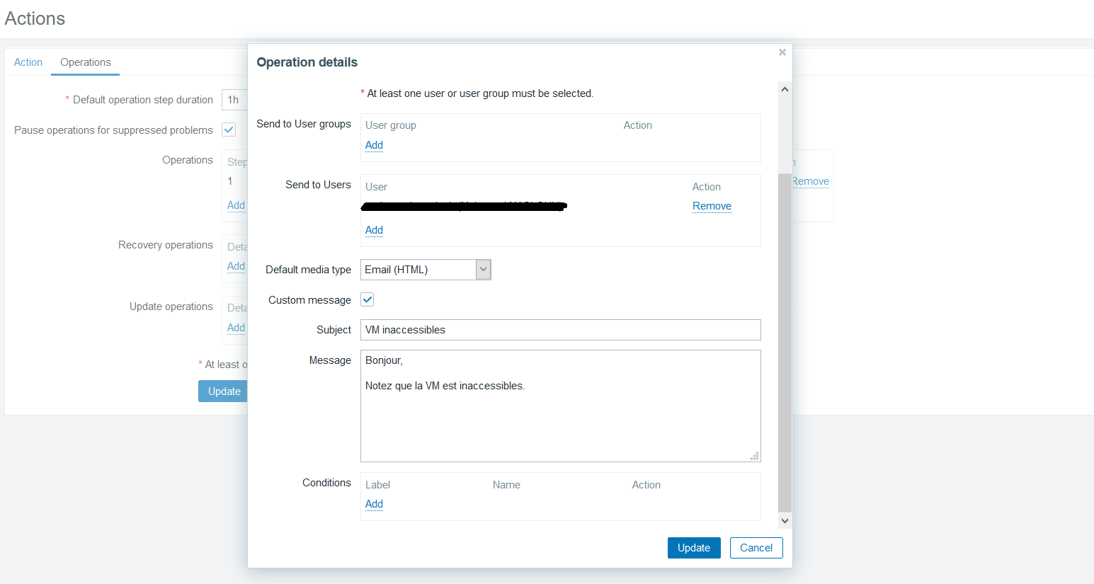 Custom message in action not working