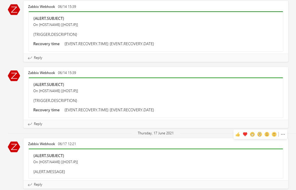 Upgraded to zabbix 5.4 however ever since alerts are not being sent to the webhook on MS Teams, i imported the new .yaml config and followed the steps but to no avail. I run the test under media types and it sends something to teams however the automatic alerts are no longer going to teams as it was doing before the update, all i see i see is what i attached .