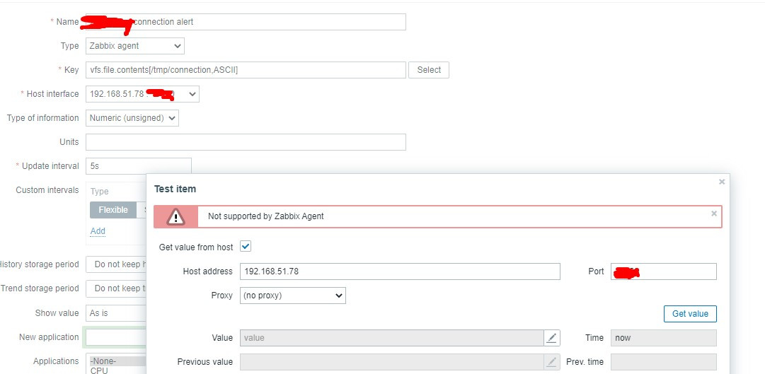 -unable to get teh value, its says NOT supported by ZABBIX agent