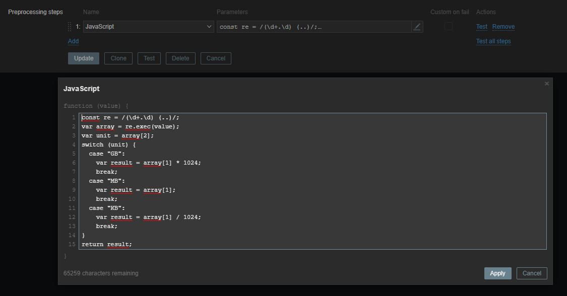 If I use a regex like "(\d+.\d+\s\S+)" to get the unit, than I have an error message that I cannot have a string in a float zabbix item.