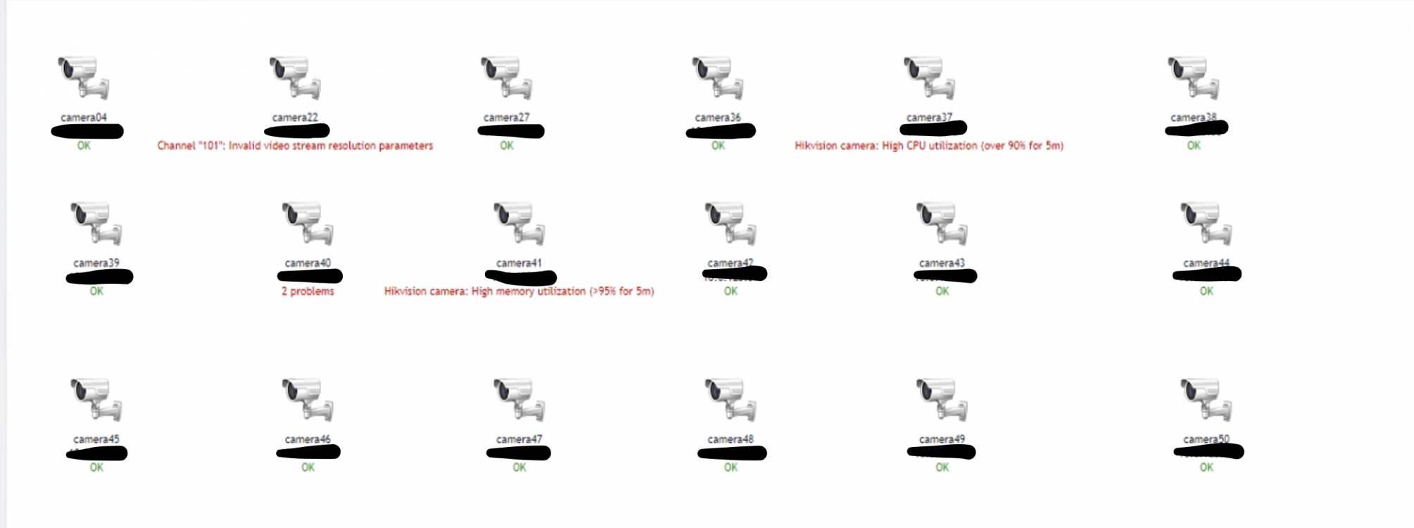 Busy with the same type of project. I'm using the default Hikvision camera by HTTP template. I created a camera map to display all the cameras. We have 3 NVR's and more than 70 cameras.