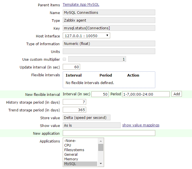 # zabbix_get -s 192.168.1.131 -k mysql.status[Connections]