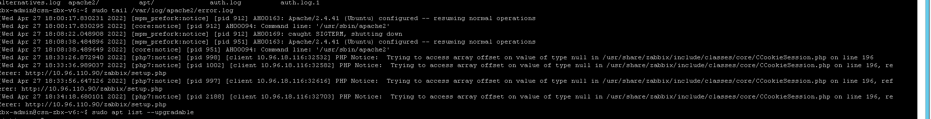 "Trying to access offset on value of type null in usr/share/zabbix/include/classes/core/Cookie Session.php"