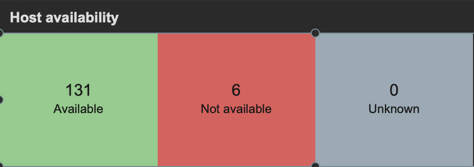 What I (read: my managers) would like to have is a traffic lights kind of webpage showing how many servers in a host group are up and how many down. So pretty much what the "Host availability" -widget does in Zabbix. I know I could create a dashboard in Zabbix and share that, but apparently the management likes the outlook of Grafana's dashboards better.