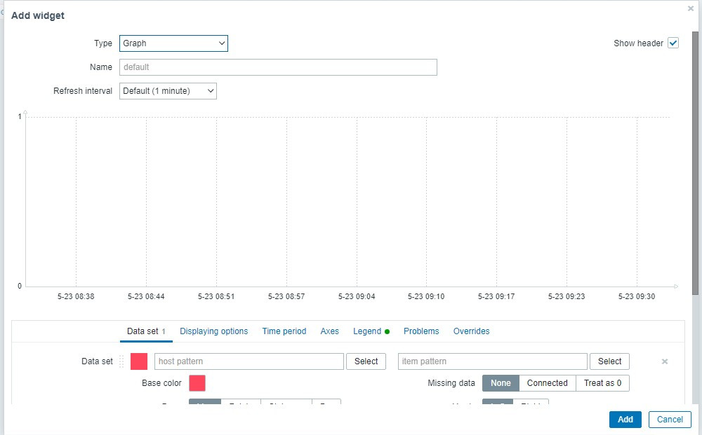 The host (switch) was discovered and the "ICMP Ping" template automatically applied. I added it to my "Devices/Networking" host group (no linked templates,) added the SNMP agent and credentials and then applied the template for the switch. All the LLD rules added interfaces and graphs as appropriate for the template but none of this has anything to do with the dashboard!