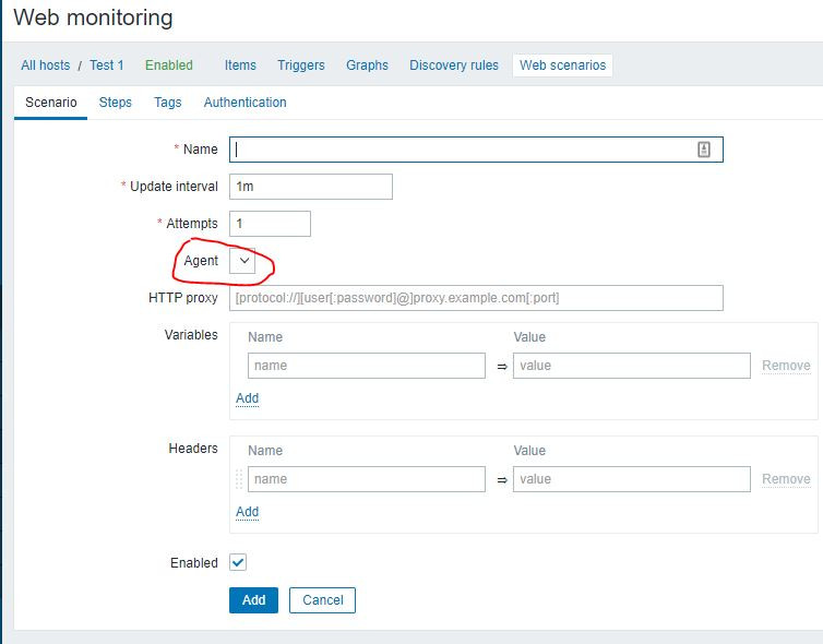 Drop-down listings are not available. Due to this problem, I'm unable to select Agent, etc while configuring the Web monitoring.