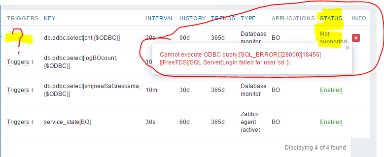 I am trying to monitor MSSQL server databases using ODBC and FreeTDS.