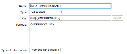Now I figured LLD would be great of this. I don't need to individually define the dozens and dozens of metrics, LLD will automatically create all of them. But the problem then comes in when I try to define triggers. A trigger prototype is mapped to item prototypes. And items prototypes are dead simple: just echo back the metric value from the external check as a "calculated" field. See attached pic.