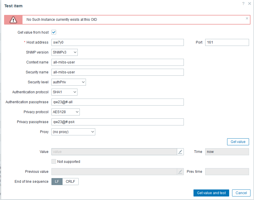 ​[root@mgt03 zabbix]# snmpget -v3 -l authPriv -u all-mibs-user -a SHA -A "redacted" -x AES -X "redacted" -On sw7r0 .1.3.6.1.2.1.2.2.1.10.41