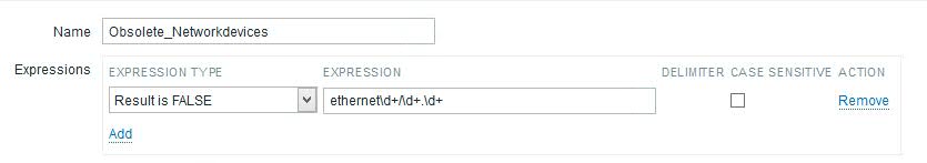 But there many virtual interfaces we dont want to monitor, so i wrote a regular expression "ethernet\d+/\d+.\d+" and added a link under Discovery list/Network interfaces/Filters to get rid of SNMP values (ifDescr) like