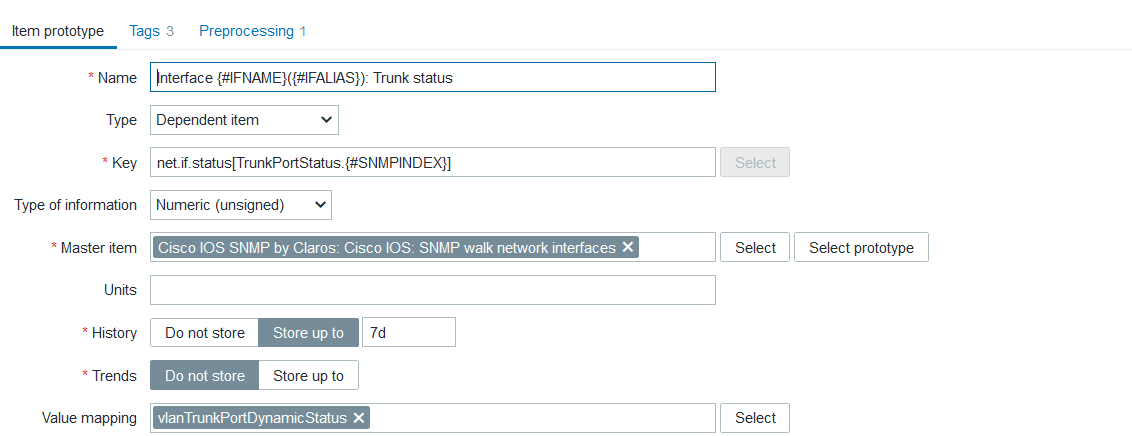 OK. Having some trouble getting the item prototype working for net.if.status[TrunkPortStatus.{#SNMPINDEX}]