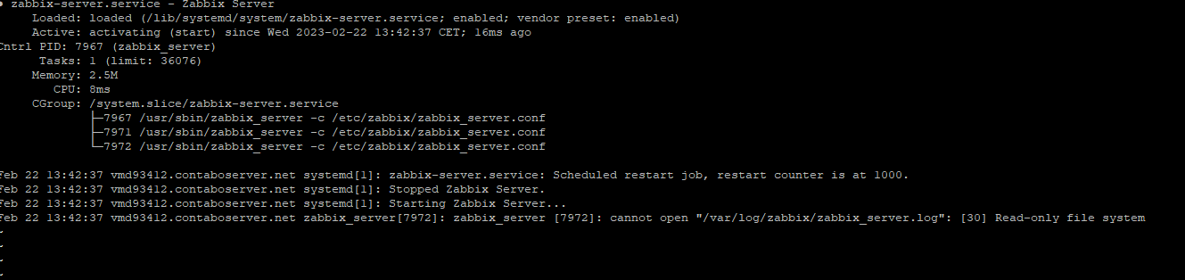 after an Serverchange (same ip) we cannot open the zabbix server http://xxx.xx.xxx.54/zabbix anymore. If i try to start systemctl start zabbix-server i get this: see png