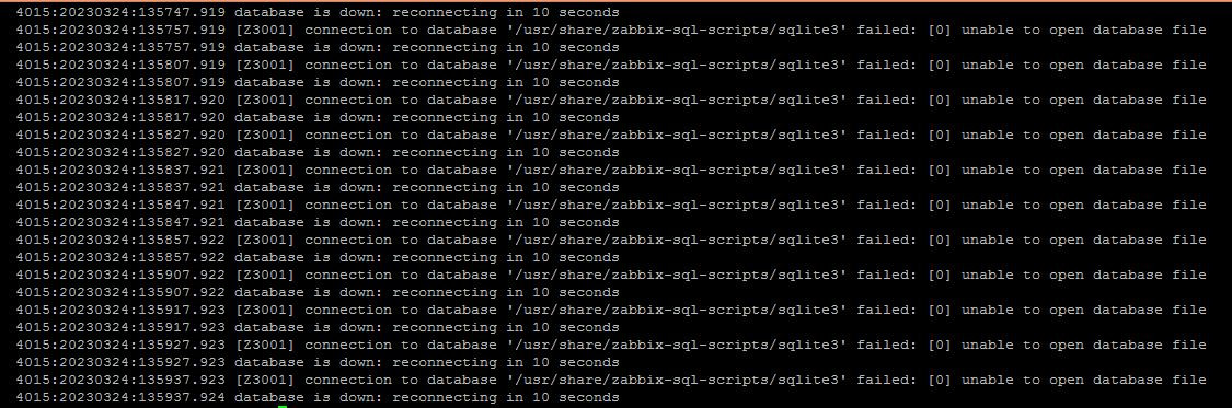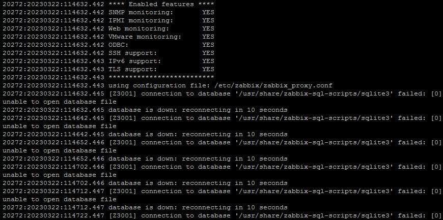 I installed the zabbix 6.4 (proxy) on CentOs 7 with SQLite3, but it gives an error "database is down" and "unable to open database file"