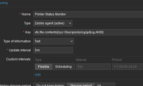So, I am successfully using Zabbix Agent for IBM AIX with AIX Template and now I would like to add a new monitor alert and that is when a printer changes from READY status to DOWN instead.
