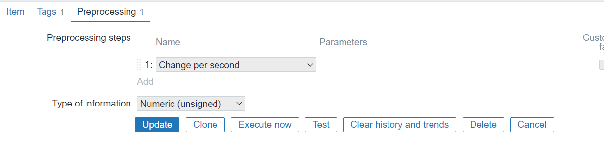 i config item with Preprocessing 【change per second 】as follow .and test the pre process is SUCCESS ,but no last data .how to solve the problem ???
