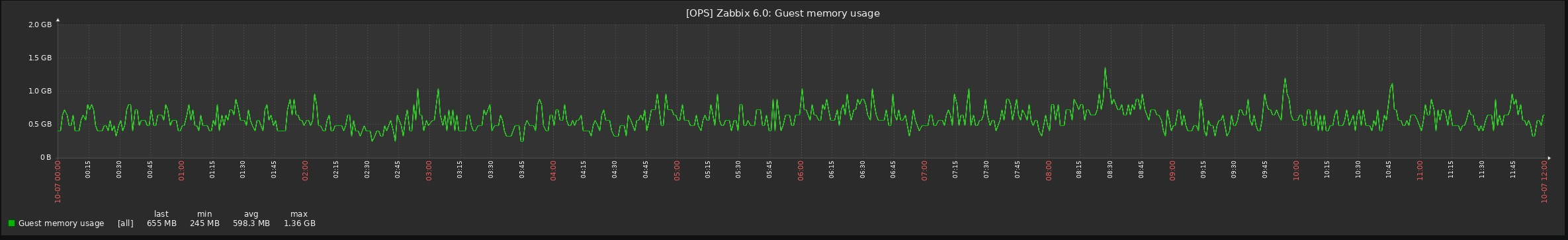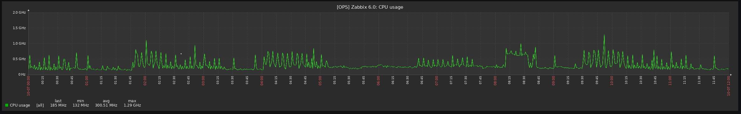 - Zabbix: 6.0.20 (70 hosts, ~6k items, 800 triggers, ~10k new values / hr)