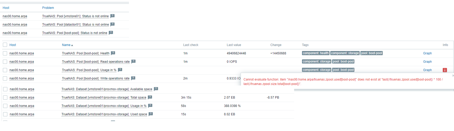 Hello, are there bugs in template TrueNAS https://www.zabbix.com/de/integrations/truenas