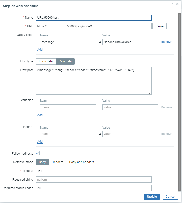 This should result in you having item which either has JSON with PONG reply or the "Service Unavailable" in it's history. With that you should be able to create a trigger with expressions like