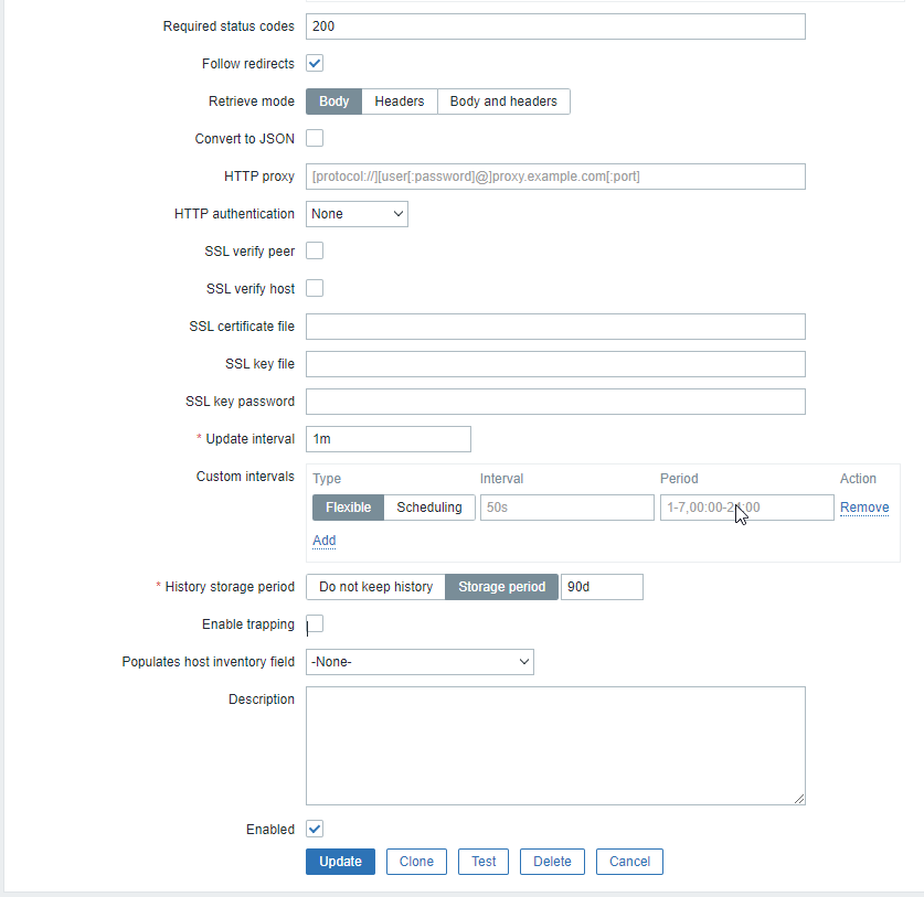 Unable to retrieve body information from URL with zabbix againt